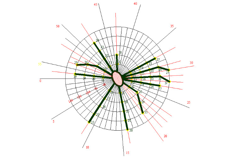 樹根探測儀設(shè)計用于探測樹根的位置。它的工作原理是基于附著在樹干上的傳感器和接近樹根插在土壤里的傳感器之間的聲波速度的測量。與樹干保持一個固定距離,調(diào)整土壤傳感器的位置,使得能夠?qū)θ繕涓Y(jié)構(gòu)進行繪圖。該方法的好處是,測量不受其它樹的樹根、管道或其它地下埋設(shè)物的影響。